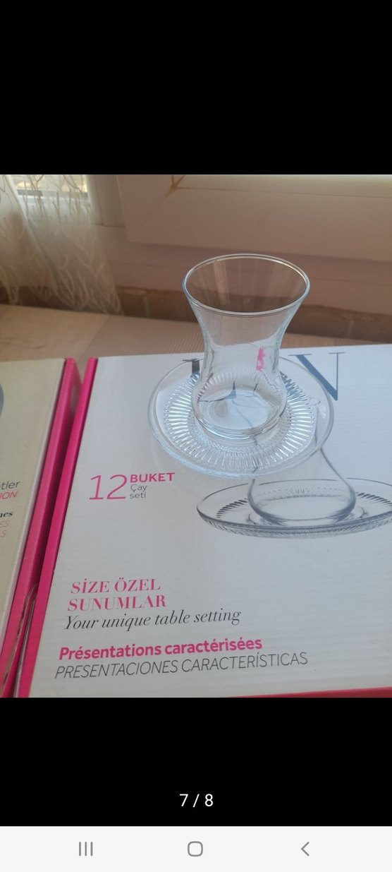 12 parça çay bardağı ve tabaktan oluşan, özel sunumlu şeffaf çay seti. Çay keyfinizi zarif bir sunumla tamamlar. görselde 2takim var istediniz takımı belirtin tek takım fiyatıdır 2takım 380tl olur