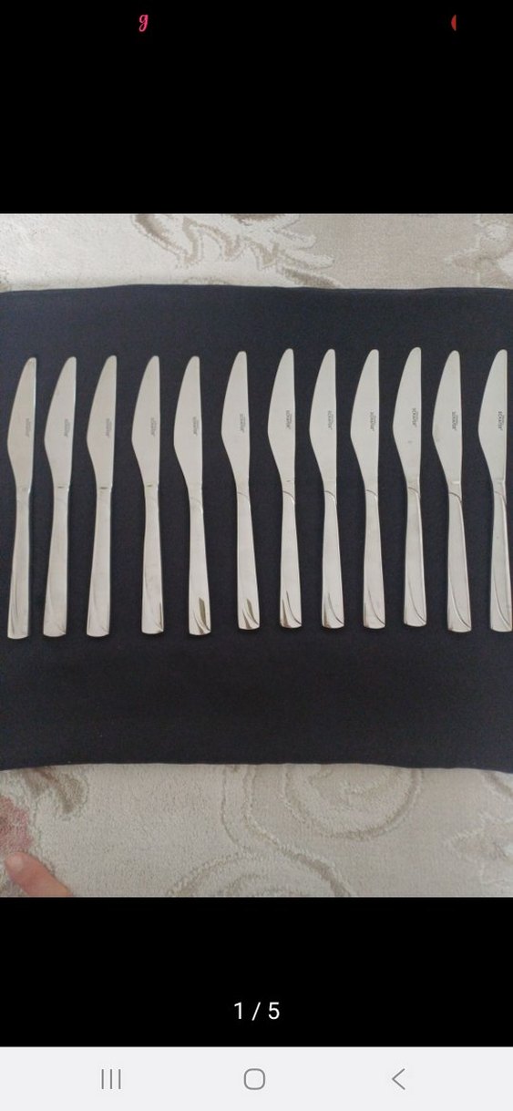 12 parça paslanmaz çelik yemek bıçak seti, beyaz saplı, çeşitli kesim ihtiyaçlarına uygundur. Mutfakta kullanıma uygundur.Schafer marka hiç kullanılmadı.