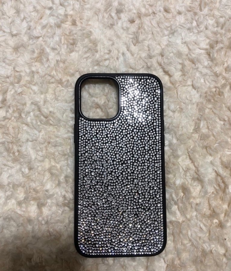Gri renkli, payetlerle kaplı ve gotik tarzda tasarlanmış telefon kılıfı, parlak ve dikkat çekici bir görünüm sunar.
