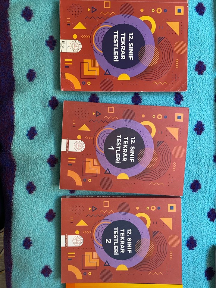 12. sınıf öğrencileri için Test 1, Test 2 ve Test 3 adlı tekrar testleri seti, üç kitaplık set. Tanesi 50 lira