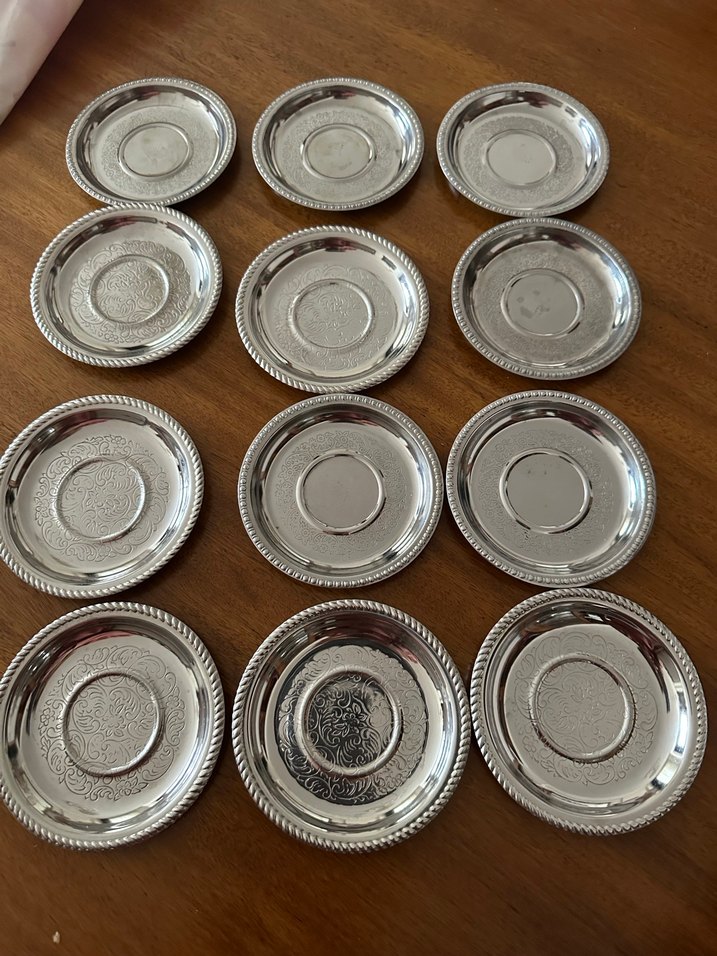 12 tanesi Eskiden kalma desenli çelik parlak çay tabagı
