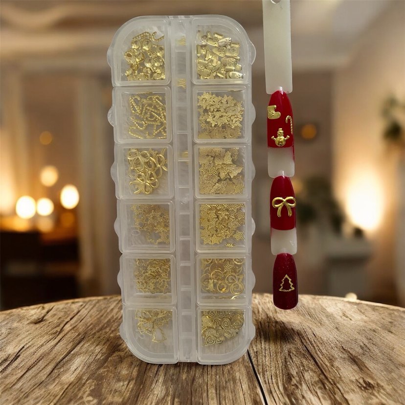120 adet noel temalı gold Tırnak charmları YAPIŞTIRICI HEDİYELİ