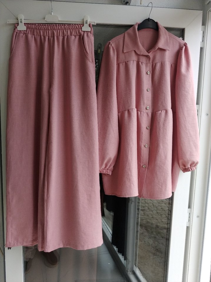 kumaşı sofya keten ölçüleri pantolon boy 98 bel esnemeden 28 paça genişliği 32 tunik boy 72 iki koltuk arası 52 kol 61