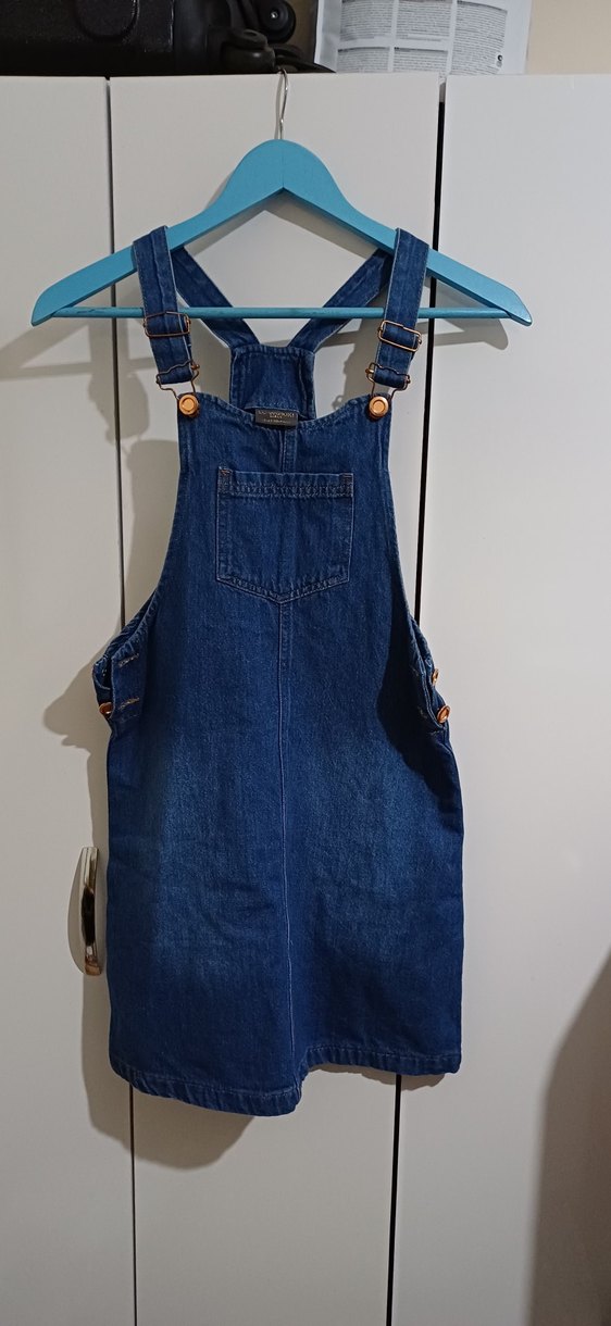 Kızlar için lacivert kot kumaştan, tokalı askılı, düz desenli, midi boy ve dar kesim salopet. Günlük sokak stili için uygundur. 156 - 164 cm.