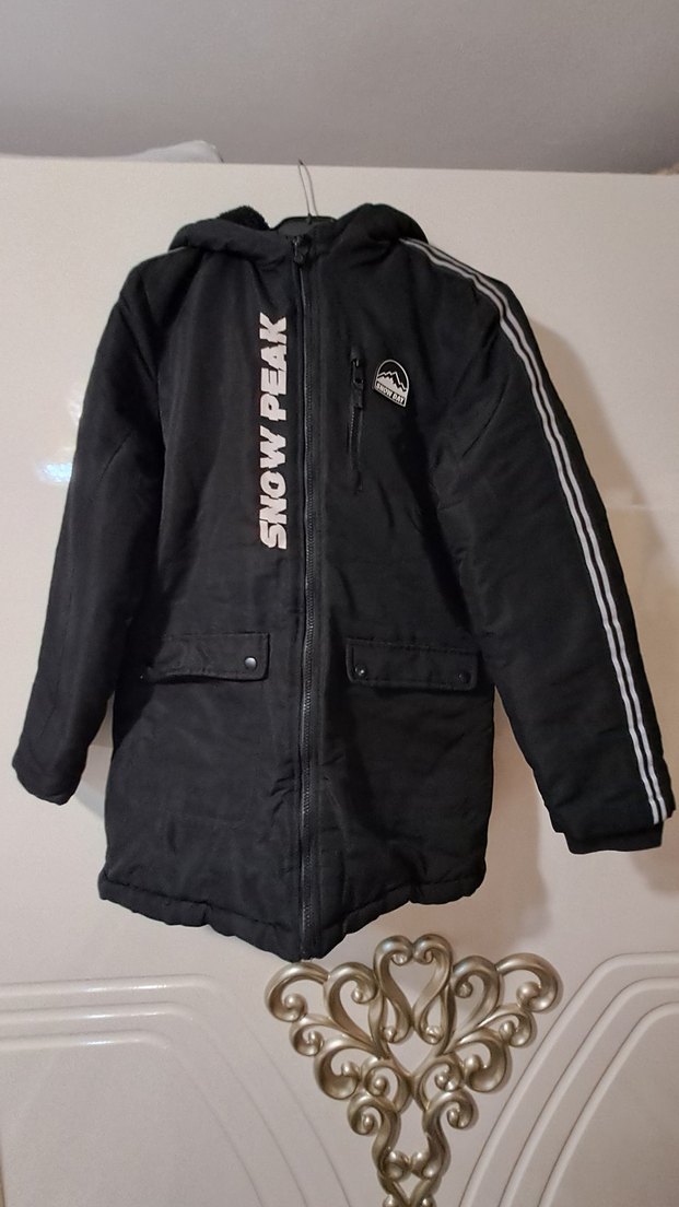 erkek cocuk siyah kolları şeritli içi polar mont
