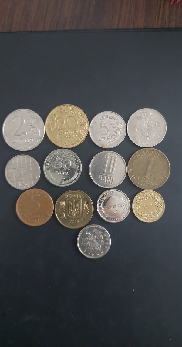 Rusya, Fransa, Arnavutluk, Belçika, Hollanda, Hırvatistan, Romanya, Avusturya, Bulgaristan, Ukrayna, Bosna, İsviçre Birleşik Krallık madeni paraları 13 adet
