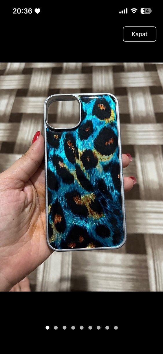 Bu telefon kılıfı, parlak yüzeye sahip ve bohem tarzda renkli mavi leopar desenlidir. Canlı ve şık bir görünüm sunar.
