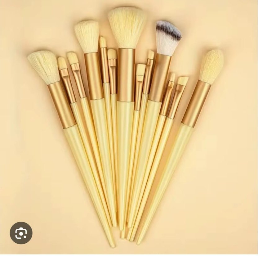 Yumuşak kıllara ve açık renk saplara sahip bej makyaj fırçası seti, çeşitli makyaj uygulamaları için uygundur. ️