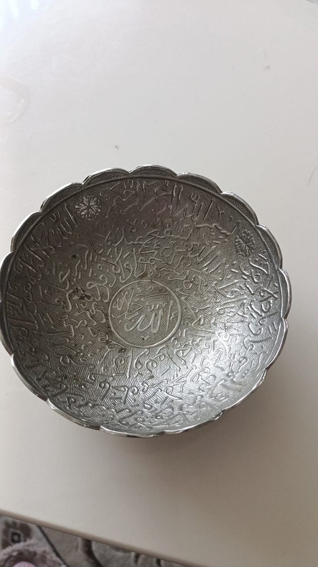 işlemeli Arapça yazılar ve dalgalı kenarları olan geleneksel tarzda tabak. ️