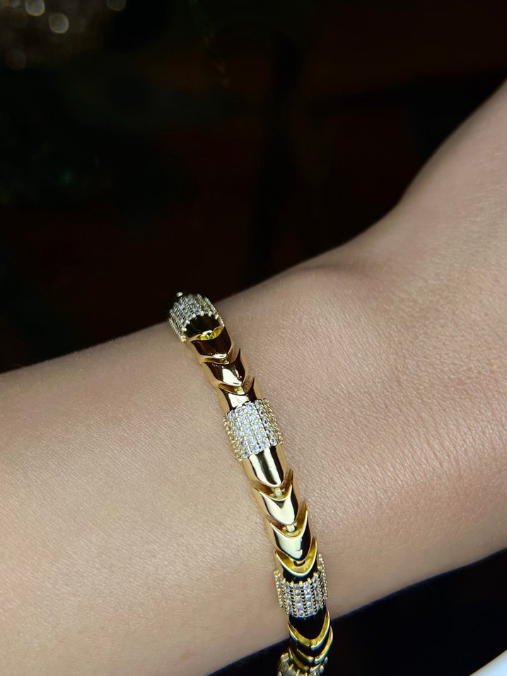 14 K görünümlü zirkon taşlı çelik vip bileklik