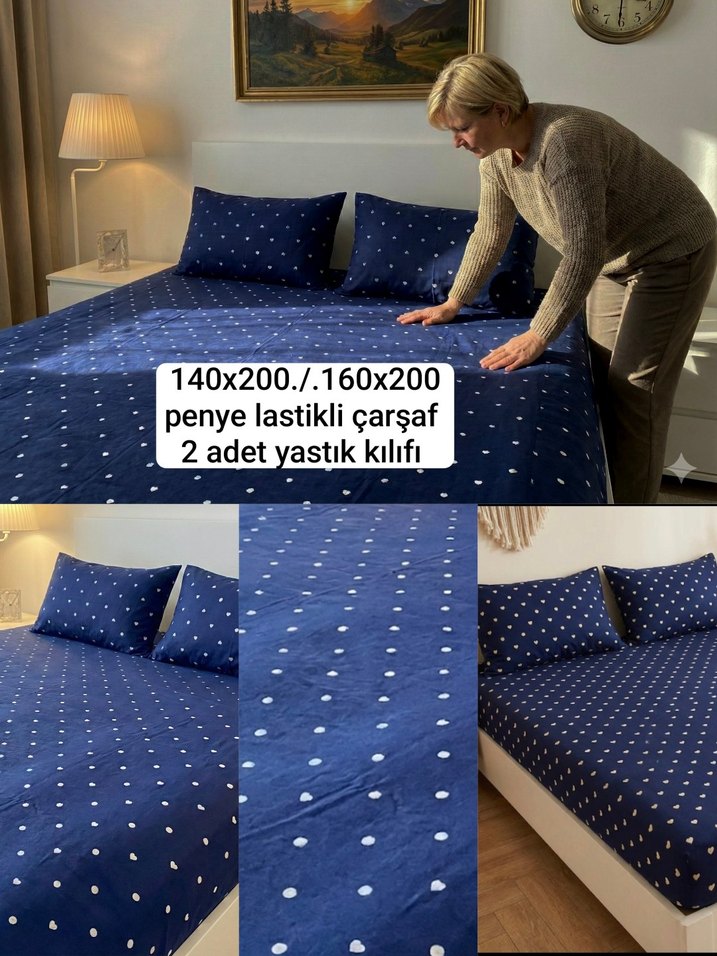 140x200 ve 160x200 penye lastik çarşaf 2 yastık kılıfı