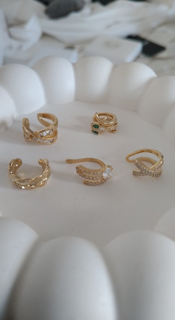 Diger altın renginde, parlak detaylı ve hafif yılan desenli küpeler. Bohem tarzı ve günlük kullanıma uygun, ışıltılı tasarım. ✨