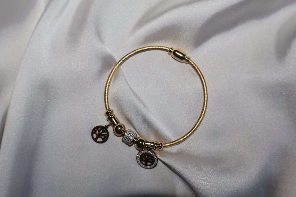 Altın renginde, 14K kaplama, iki hayat ağacı figürüyle sade ve bohem tarzda günlük kullanıma uygun. Charm Bileklik
