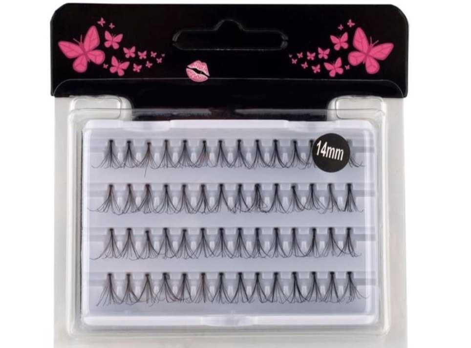 14mm uzunluğunda siyah renkli takma kirpik demetleri, kolay uygulama için düzenlenmiş. Renkli tasarımıyla hacim ve belirginlik sağlar.