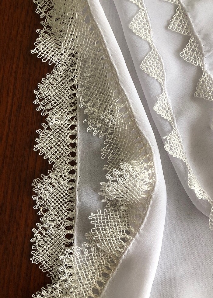 Hiç kullanılmadı 3 tarafı da iğne oyasıla kaliteli şifona yapılmıştır isteyen ilan açtırabilir adet fiyatıdır