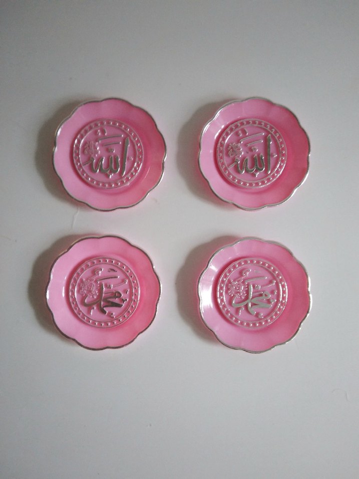 Çap 4.5 cm arkasi magnetli Bebek mevlutlerinde kullanabilirsiniz Allah ve Muhammed Lavzali karişik olarak gelir 15 adet fiyatidir