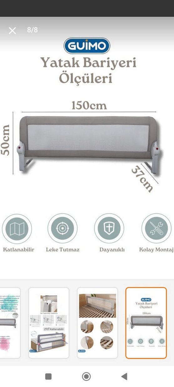 150 cm uzunluğunda gri bebek yatağı koruyucusu katlanabilir yapıya sahiptir. Leke tutmaz ve dayanıklı malzemeden üretilmiştir. Kolay montaj imkanı sunar. ️