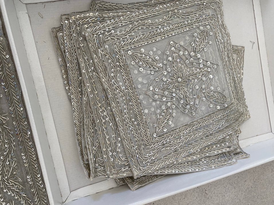16parça hint işi salon takımı,12adet küçük,2adet büyük örtü,1adet dikdörtgen runner,1adet kare fiskos örtüsü ,tamamı pul ve boncuk işlemelidir , yıldız motifli ve dokulu desenlere sahip nakışlı bohem tarzda masa örtüsü. Her masa düzenine sanatsal bir dokunuş katıyor. ✨