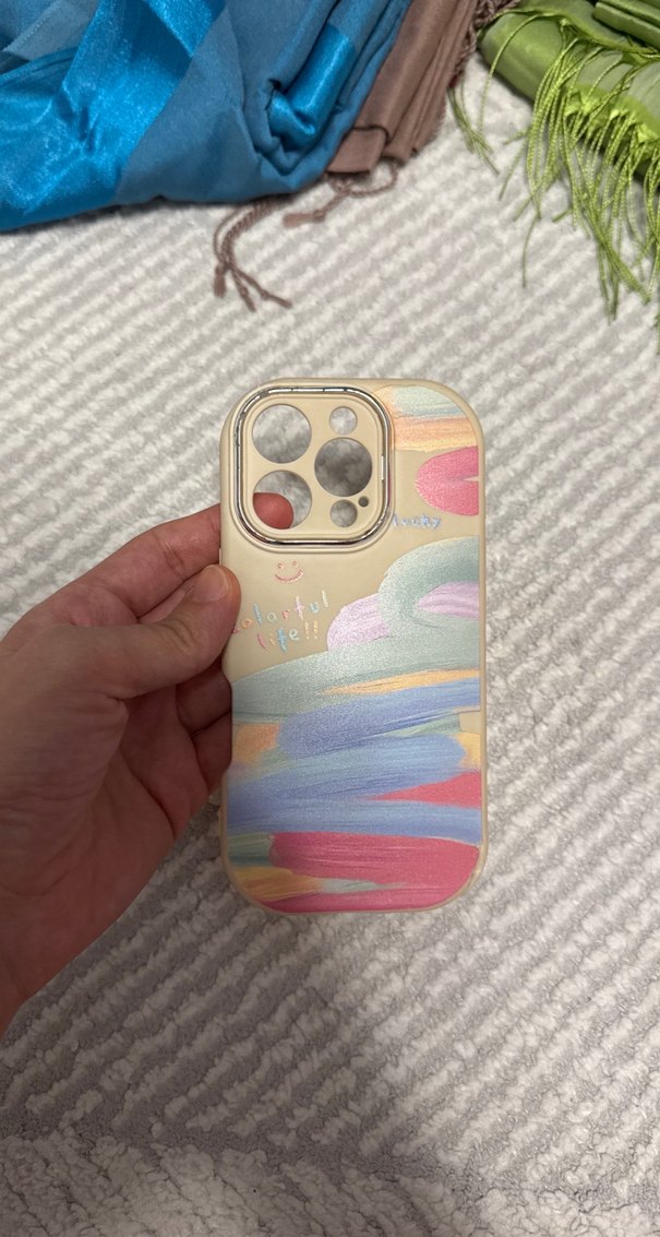 Pastel renklerde, kabartmalı dokusu ve çok renkli fırça darbeleriyle bohem tarzı telefon kılıfı. Telefonunuza yumuşak, sanatsal bir dokunuş katıyor. Ucunda biraz kırık var