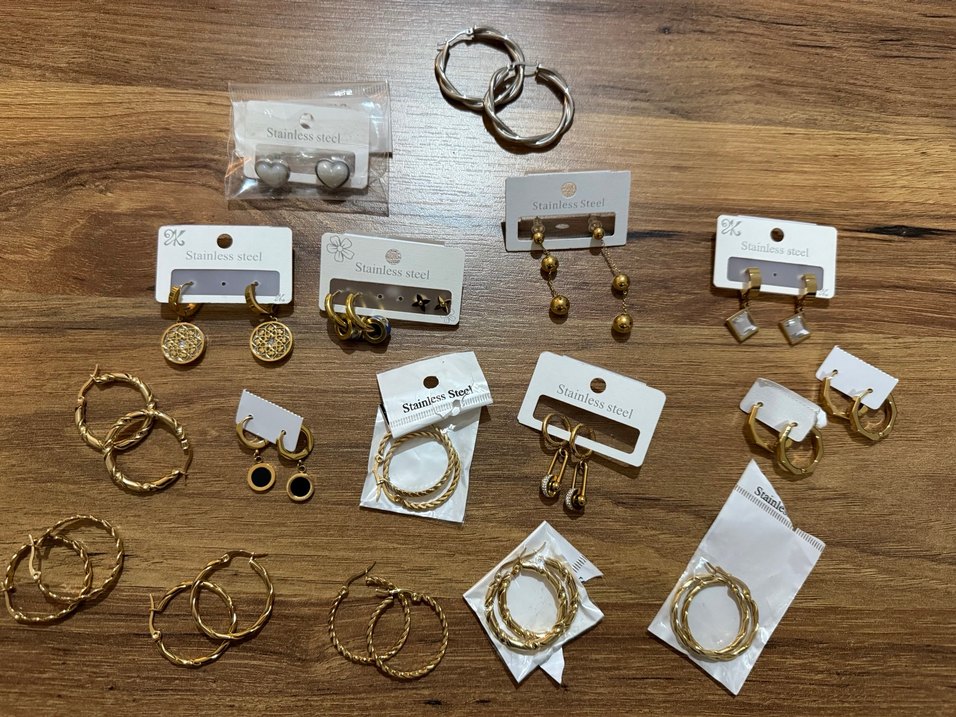 17 adet toplu sıfır çelik küpeler bitiriyorum