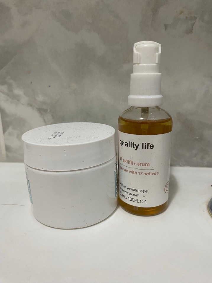 17 aktif bileşenli erkek saç serumu ve maskesi, saçı besleyip güçlendirmek için uygundur. Serum pompalı şişede, maske beyaz kavanozdadır.