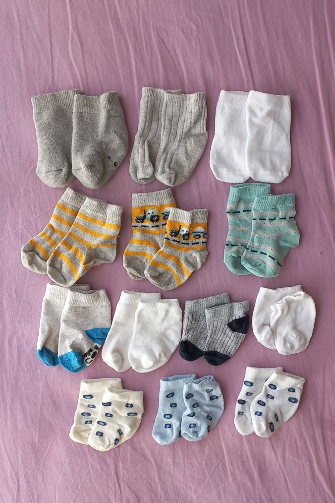 17 ÇİFT FİYATIDIR. Fotoğrafları çektikten sonra 4 tane daha buldum, 2. fotoğrafa ekledim onları da ilk fotoğrafta 13 çift var çünkü.Yenidoğandan itibaren karışık şekilde büyükler de var.Büyük dediğim max 1 yaşında olabilecek şekildedir.Deformeleri yok iyi durumdalar. Sıfırlarına 2 kat para vermek yerine, kullanıma engel durumları yok.İhtiyacı fazlasıyla karşılarlar.