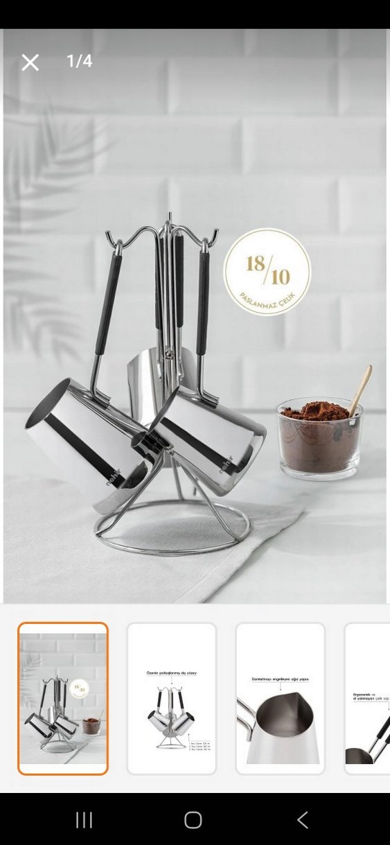 18/10 paslanmaz çelikten yapılmış, siyah saplı kahve fincanları seti. Metal askılık ile pratik saklama sağlar. ☕