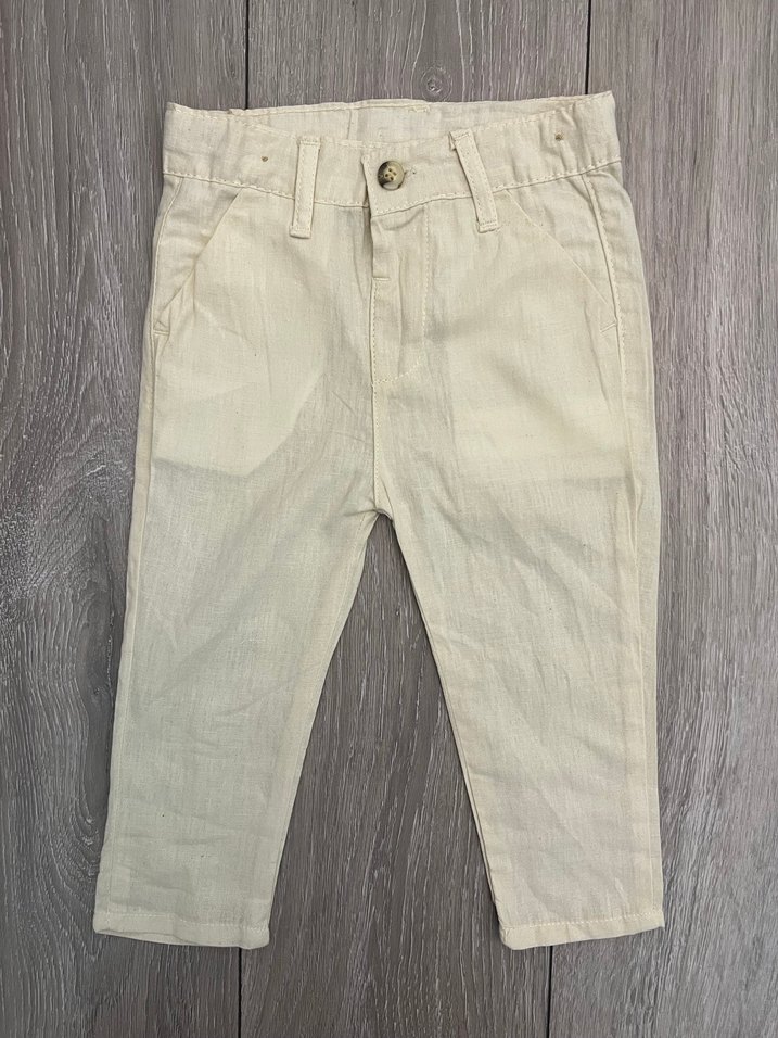 Çok kaliteli ve kullanışlı bir model. Belinde küçültme lastiği vardır.incecik keten bebek pantolon.diz kısmındaki belli belirsiz ip çekilmesinden dolayı fiyatı uygundur.bej renktir.
