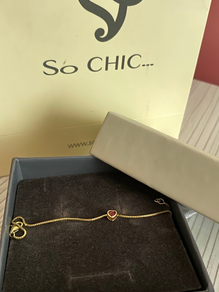 Materyal: 925 Ayar Gümüş Materyal Rengi: 18 Ayar Sarı Altın Kaplama Taş Boyutu: 5 Mm Taş Rengi: Kırmızı Uzunluk: 16+3 Cm Taş İsmi: So Chic... Zirkonu Faturası yok hediye geldi. Sitede şu an fiyatı 1900 tl iki kere takıldı ürün temiz kutusuyla gönderilecek.
