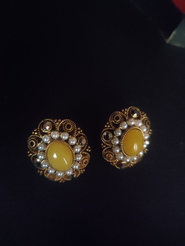 kehribar taş, tatlı su incisi ve nakış detaylı vintage tarzda gümüs üzerine 18 ayar altın kaplama küpe Düğün için uygun, klasik görünüm sunar. marka temsili #vintage #kupe #altin #gümüs