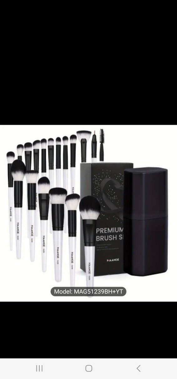 Beyaz saplı, koyu kıllı premium makyaj fırça seti. Detaylı uygulama için çeşitli fırçalar içerir. Şık siyah kutu ile birlikte. Sıfır. Jelatini üzerinde. Plastik, kapaklı kutu.