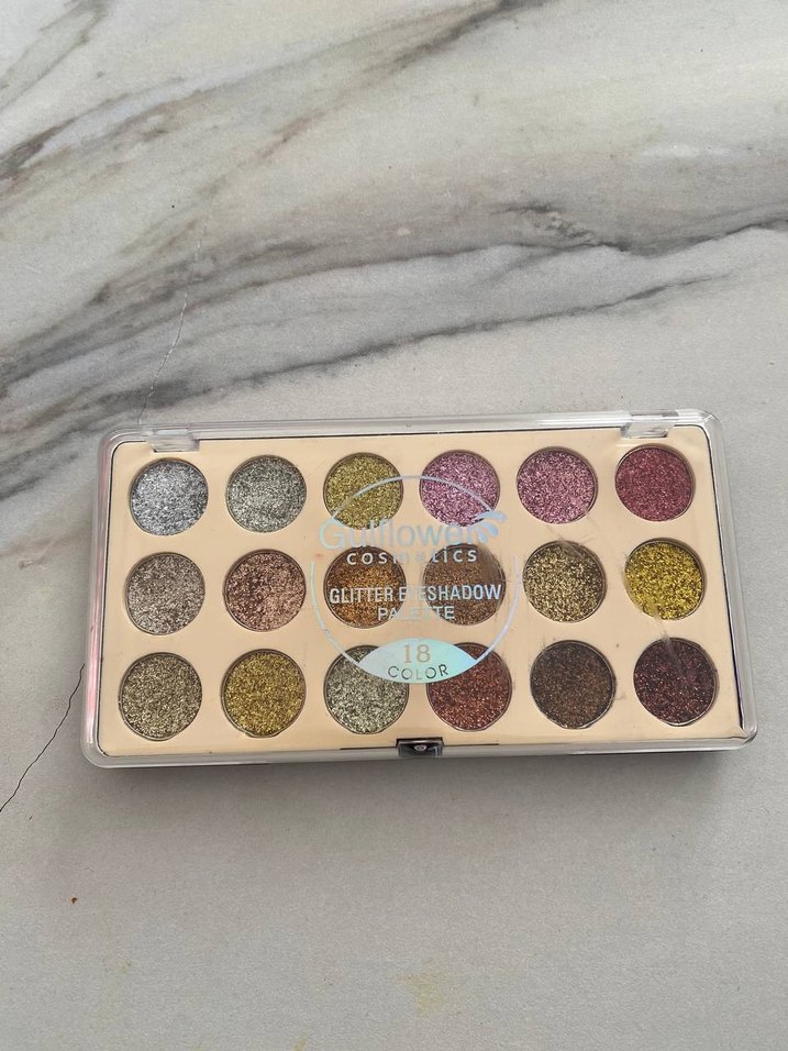 18 renkli, parlak ve ışıltılı far paleti, göz makyajı için çeşitli açık ve çok renkli seçenekler sunar. ✨