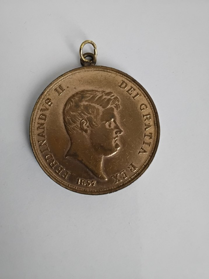Aile yadigârı, 1857 tarihli orijinal İki Sicilya Krallığı – 60 Grana madeni para. Tek adet gönderilecektir. Ön yüzünde Kral II. Ferdinand portresi, arka yüzünde kraliyet arması ve “REGNI VTR. SIC. ET HIER.” yazısı bulunuyor. (İki Sicilya ve Kudüs Krallığı) Nadir bulunan, 168 yıllık tarihi bir koleksiyon parçasıdır. Üzerinde sonradan eklenmiş halka mevcut (askılık yapılmış). Koleksiyoncular, antikacılar veya tarihi objeler meraklıları için değerli bir eserdir. ✅ Orijinaldir. ✅ 1857 tarihli. ✅ Antika ve koleksiyon ürünü.