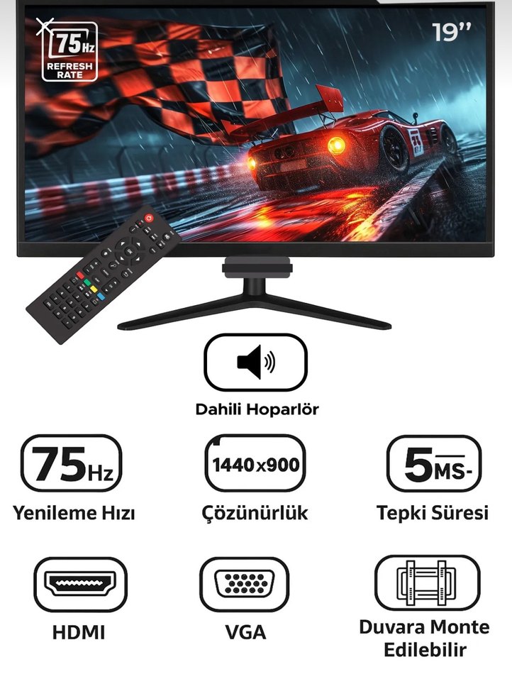 Genis ekran tasarimiyla Full HD (FHD) çözünürlükte keskin ve net görüntüler sunar. - 19 inç boyutuyla ideal bir izleme deneyimi saglar; oyunlardan filmlere kadar her türlü içerik için uygundur. - Dahili hoparlör sistemi sayesinde ses kalitesini artirarak multimedya içeriginizi daha zengin hale getirir. - HDMI baglantisi ile yüksek hizli veri aktarimin desteklerken, VGA girisiyle eski sistemlerle uyumluluk sunar. - 75 Hz yenileme hizina sahip olmas1, hareketli sahnelerde bile pürüzsüz bir görüntü akis1 saglar. - 5 ms tepki süresiyle hizli tempolu oyunlarda bile görsel bozulmalarin önüne geçer. - Tamir edilebilirlik özelligiyle kullanici dostu bir yapiya sahiptir; satici ile iletisime geçerek sorunlarinizi çözebilirsiniz. - 2 yil garantisiyle uzun süreli kullanim güvencesi verir ve olasi teknik problemlerde yannizda oldugumuzu gösterir.