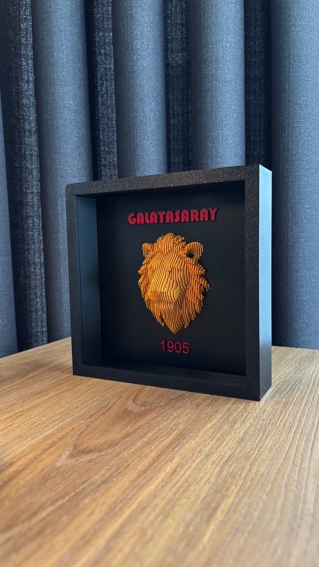 Siyah çerçevede, koyu altın tonunda 3D aslan figürlü, "GALATASARAY" ve "1905" yazılı vintage tarzda erkek rozetidir.