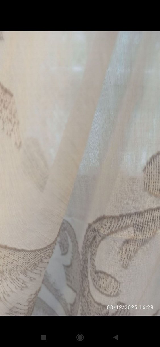 beyaz renk üzerine gri desenli seyrek pileli keten tül perde.. eni 192 boyu 161 santimdir.. yeni üründür.. aynı gün kargo edilir..