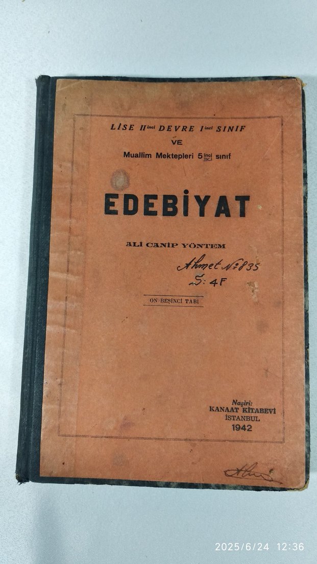 1942 yılında İstanbul'da yayımlanmış, Ali Canip Yöntem'in edebiyat kitabı. Lise ve öğretmen okulları için hazırlanmış eğitim kitabı. Kanaat kitabevi / 14. baskı / 1942 / SAHAFLIK kitap