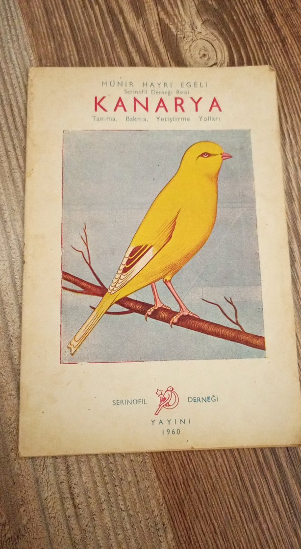 1960 yılında Serinofil Derneği tarafından yayımlanan, Münir Hayri Egeli'nin kanaryaların tanımı, bakımı ve yetiştirilmesi hakkında kitabı.
