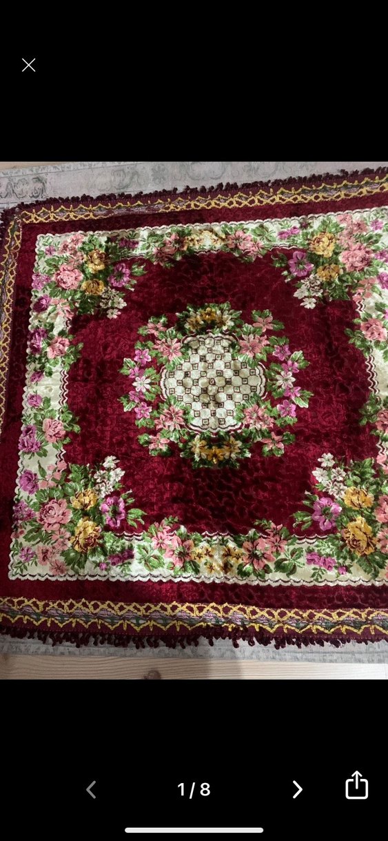 1970’lerin başında alınmış yurtdışı masa yada duvar kadife oymalı örtü 1,80:1,80 SIFIR kullanılmamış