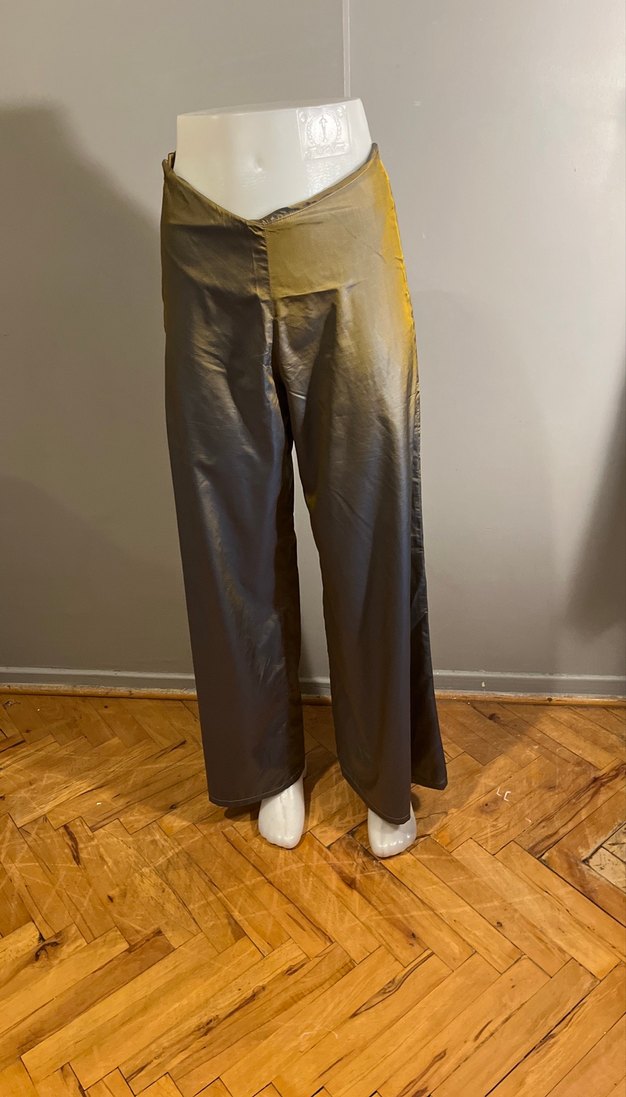 Uzun, salaş kesim Cevizi Yeşil kadın pantolonu, parlak ve ipeksi dokusu ile Tafta kumaştan drapeli tasarıma sahiptir. Günlük kullanım için ve özel günler için uygundur. ✨Tamamen el işidir özel dikim ve tasarım .