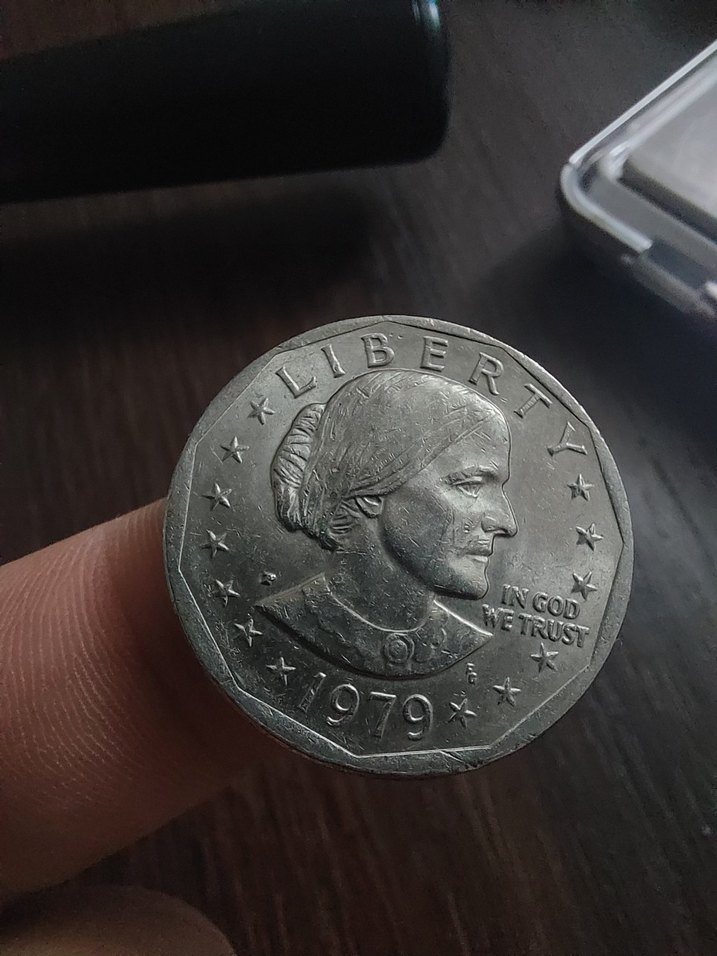 Parlak gri renkte, 1979 tarihli "Liberty" ve "In God We Trust" yazılı vintage rozet. Counterculture tarzında, eski ve dikkat çekici.