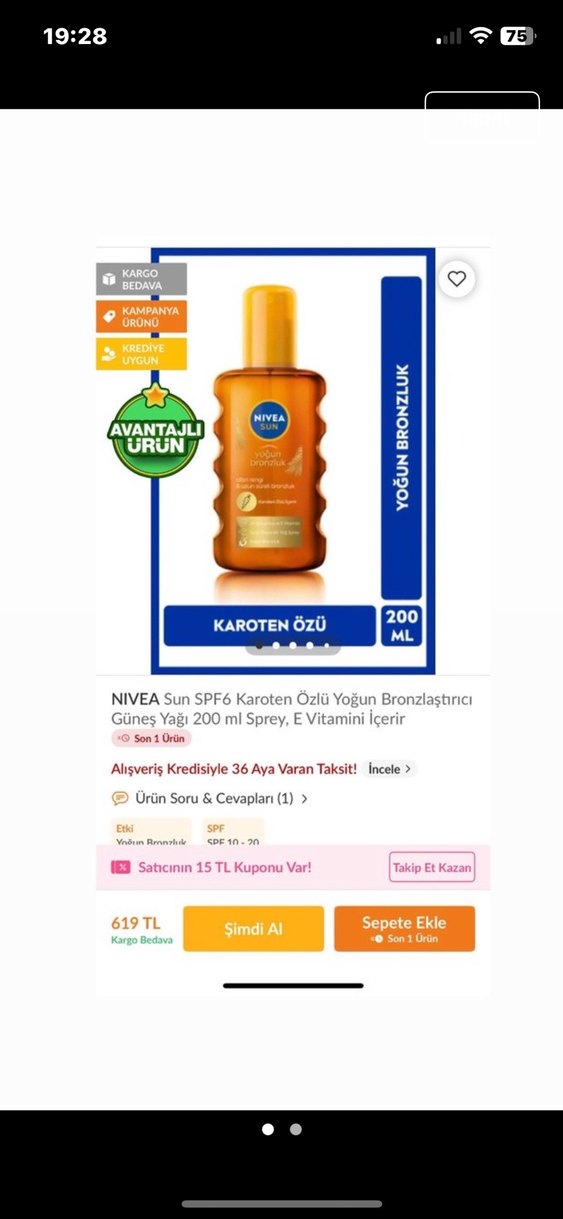 Birleştir KazanBu profilden birden fazla ürün seç, daha az öde!