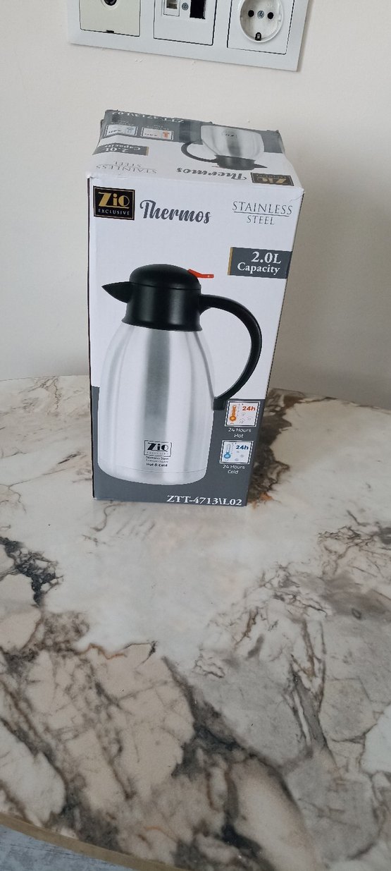 2.0 litre kapasiteye sahip paslanmaz çelik termos, içecekleri 24 saat sıcak veya soğuk tutar. Kullanımı kolay sap ve kapak içerir. ☕