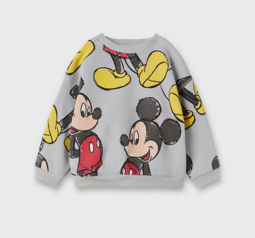 2/3/4/5 YAŞ ZARA SWEATSHİRT #disney#miniemouse#mickeymouse#Erkek çocuklar için uzun kollu, bol kesim ve bisiklet yaka sweatshirt. Yumuşak örgü tüylü kumaştan yapılmış, canlı Mickey Mouse baskılı gri tonlarda. Rahat sokak stili için uygundur.