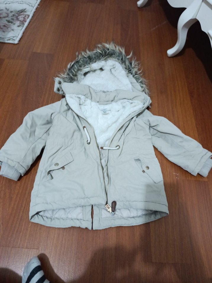 2 3 yaş Bej kız Çocuk Kürklü Kapüşonlu Mont