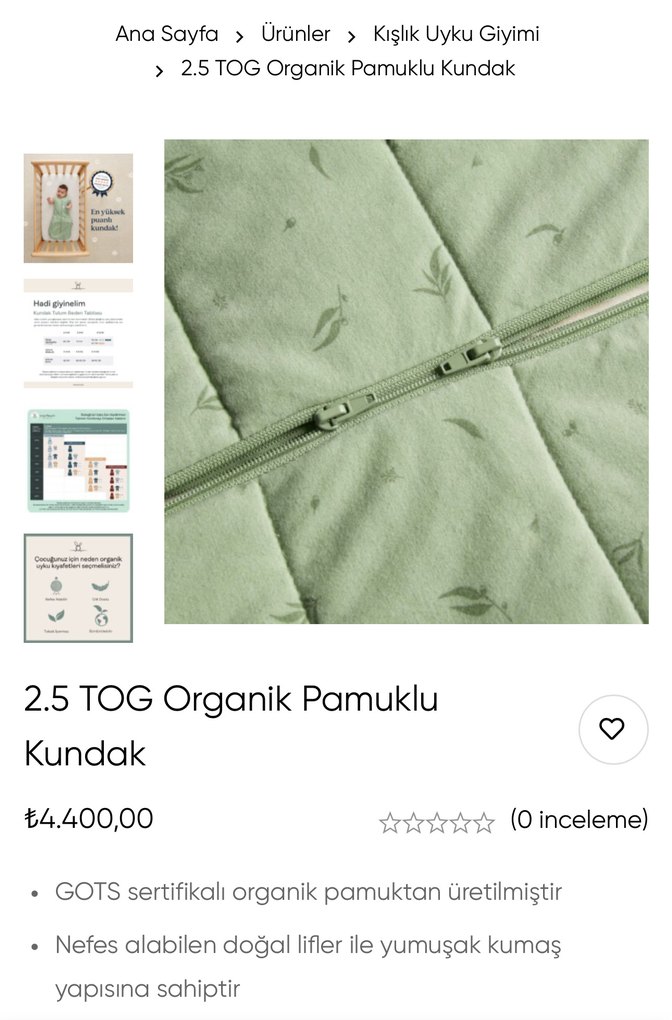 GOTS sertifikalı organik pamuktan üretilmiş, nefes alabilen doğal liflerle yumuşak kumaşa sahip kundak. Kolay kullanım için fermuarlı. Ergopouch markasıdır
