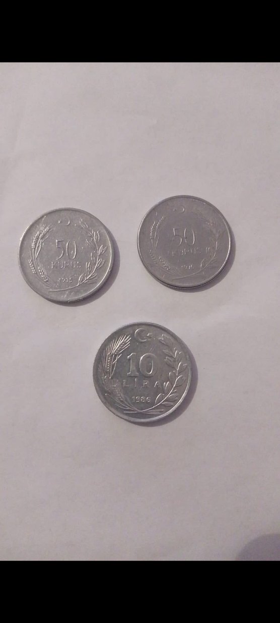 1975-1976 yapım eski 50 kuruş 1986 yapım eski 10 lira adet fiyatı 30 TL kargo ile gönderim vardır