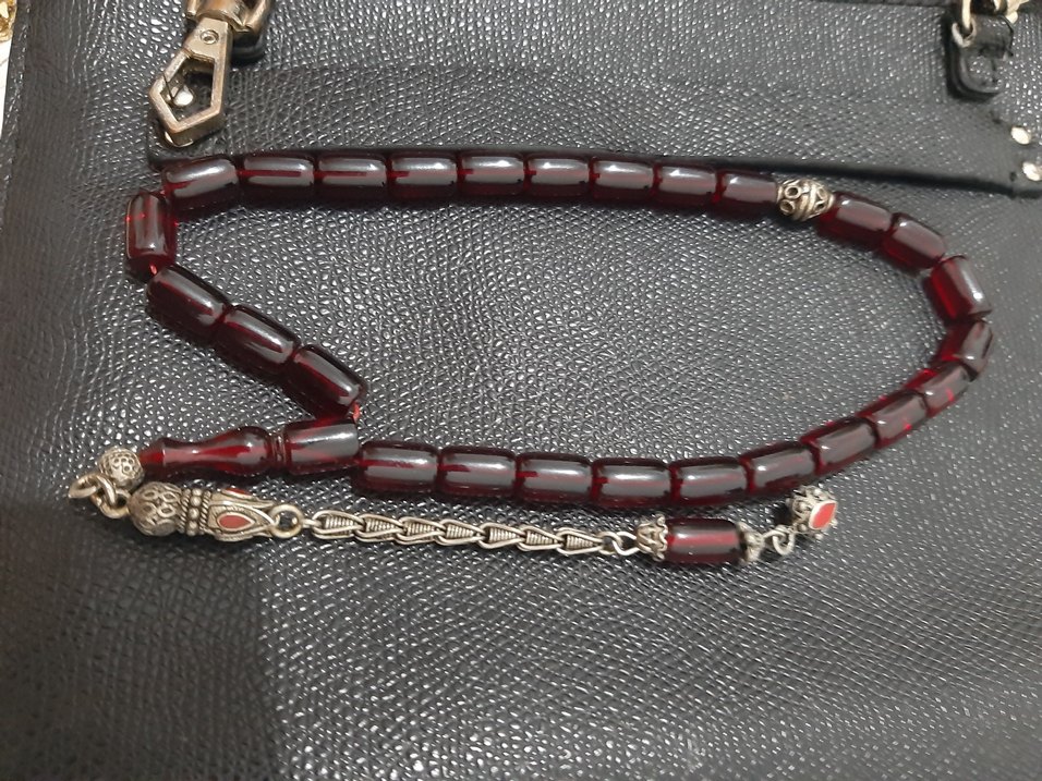 2 adet acil satilik Bordo ve yeşil kehribar tesbih