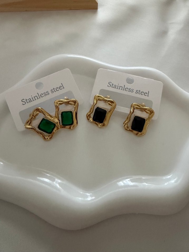 Parlak altın renkli, kısa uzunlukta kare tokalı küpeler. Paslanmaz çelikten olup romantik akşamlar için uygundur. 2 li siyah-zümrüt yeşili yanında hediye ürün ile gonderilir