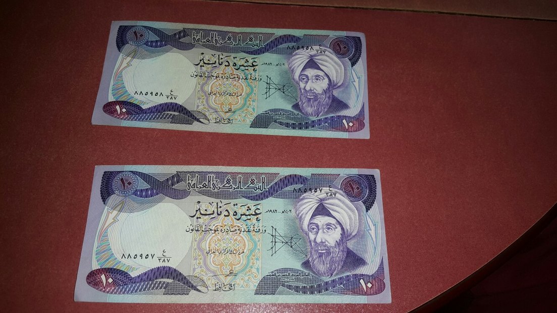 İki adet tarihi figür ve detaylı desenlere sahip eski banknot, koleksiyon için uygun.